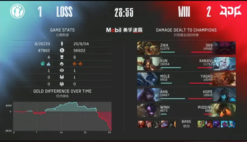 9分钟:双方在中路拉扯,IG先行击杀岩雀后追击收掉滑板鞋和泰坦打出零换三