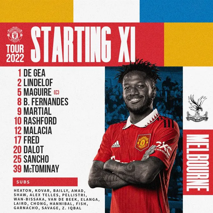 07月19日讯 北京时间今晚18:10,曼联将迎来今夏的第三场热身赛,对手是同样来自英超的水晶宫。赛前,双方公布了首发阵容。
