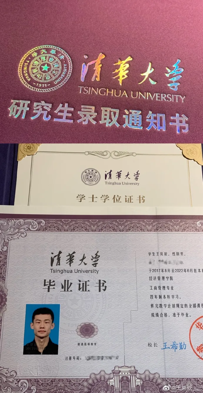 07月19日讯 CUBA清华大学球员王岚嵚更博,晒毕业证书。