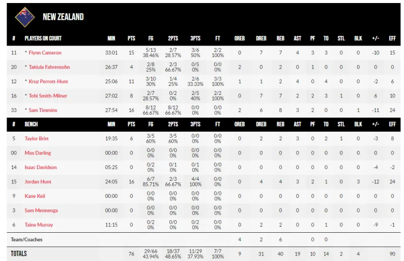 新西兰:卡梅隆15分7板4助、K亨特11分4助、米尔纳8分7板、蒂明斯16分8板3助、J亨特16分4板3助3帽。