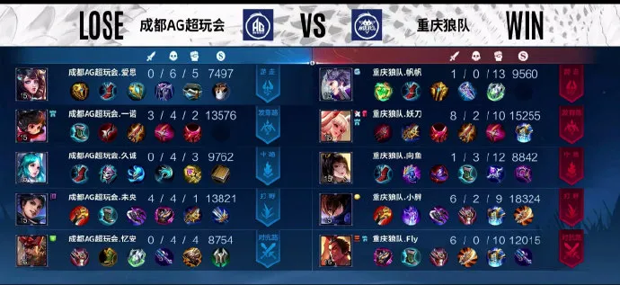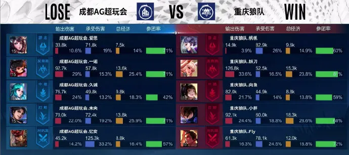 Game2:蓝色方成都AG超玩会 红色方重庆狼队