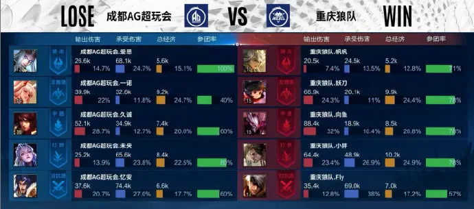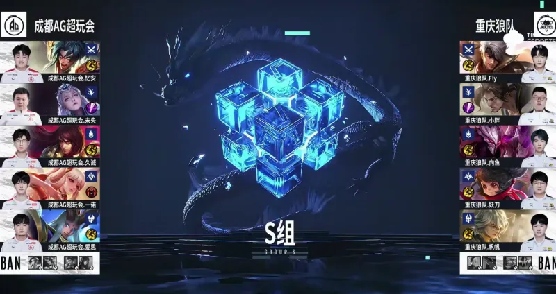 Game1:蓝色方成都AG超玩会 红色方重庆狼队