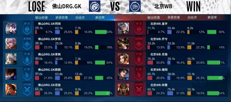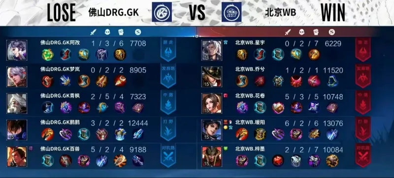 Game3:蓝色方佛山DRG.GK 红色方北京WB