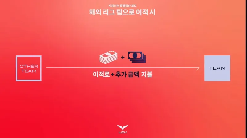 如果选手转会至海外联赛,海外赛区俱乐部需在转会费的基础上支付额外的款项。”