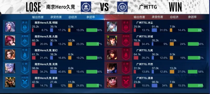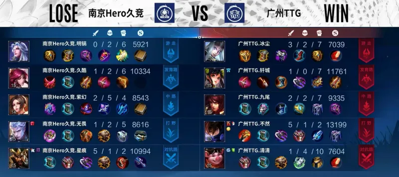 Game1:蓝色方南京Hero久竞 红色方广州TTG