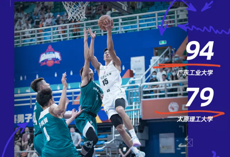 07月29日讯 CUBA全国赛今日拉开战幕,广东工业大学对阵太原理工大学,经过四节鏖战,广东工业大学94-79战胜太原理工大学晋级全国四强。