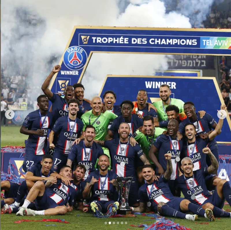 08月01日讯 在此前结束的一场法超杯的比赛中,巴黎圣日耳曼4-0战胜了南特夺冠。本场比赛结束自后,巴黎圣日耳曼球员梅西更新了社交媒体,晒照发文,庆祝夺冠。