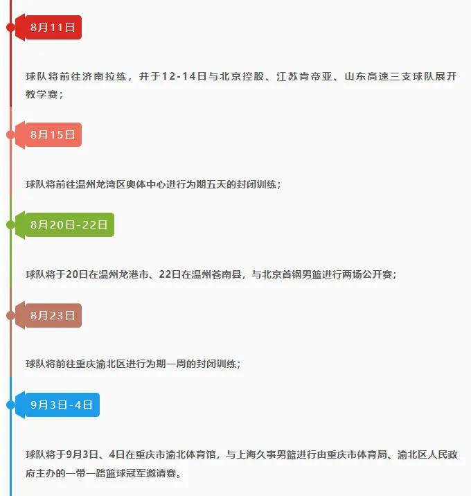 08月01日讯 浙江队官方今日公布了俱乐部近期的训练安排,并表示赴美特训球员余嘉豪将于近期回国。