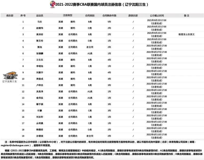 注册信息显示,郭艾伦上赛季注册完成时间为2021年9月2日,合同类别为D类,合同剩余年限为1年。也就是说,他的合同即将到期。