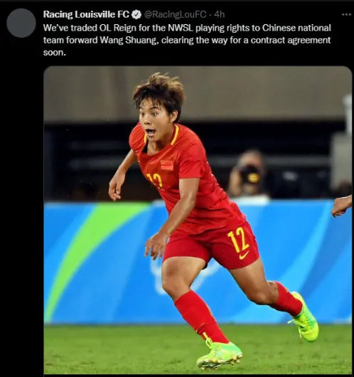 08月02日讯 美国NWSL球队路易斯维尔竞技Racing Louisville周一官方宣布,在与奥林匹克里昂女王 OL Reign的交易中,获得了王霜的比赛权,为球队与王霜签订合同扫清了道路。作为交换,路易斯维尔竞技支付给里昂奥林匹克女王30000美元及2023年NWSL的第四轮选秀权。两支球队将在周二进行比赛。