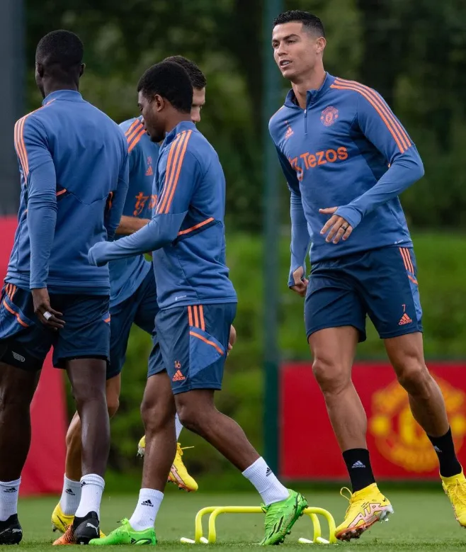 北京时间8月7日曼联将坐镇主场迎来新赛季英超的第一个对手布莱顿,今天早些时候曼联也进行了赛前训练,训练结束后C罗也是在社交媒体上晒出了自己与队友的训练照。