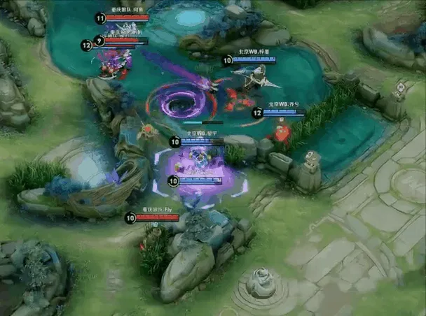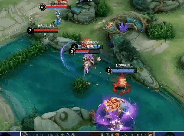 四分钟,东皇在河道开到太乙真人,双方辅助互换