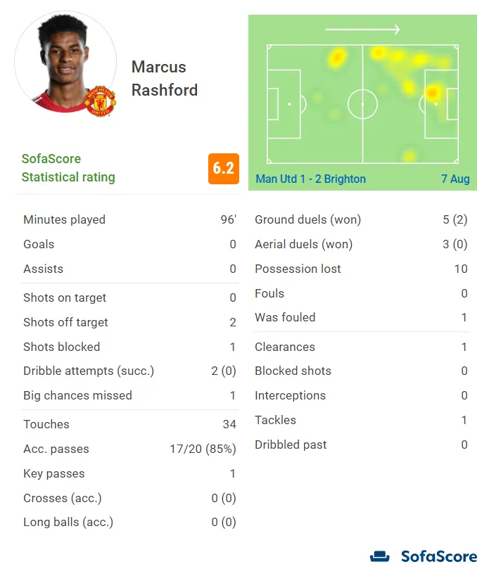 拉什福德vs布莱顿全场数据: