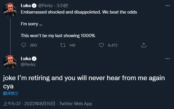 08月15日讯 在今早结束的LEC夏季赛的比赛中,Perkz所在的VIT战队加赛不敌XL无缘季后赛,而这也是Perkz职业生涯首次无缘季后赛以及世界赛的舞台。