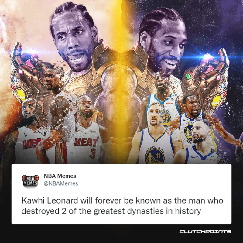 2019年总决赛,伦纳德率领猛龙4-2击败此前两连冠的勇士,伦纳德再度荣膺总决赛MVP,该年夏天杜兰特离开勇士。