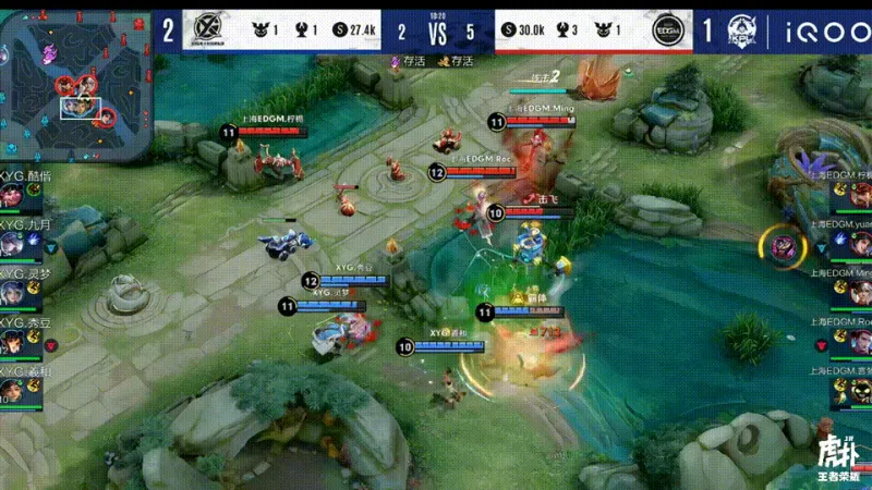 10分20秒,得理不饶人!上海EDGM再次中路抱团发起进攻,柠栀廉颇三段大招逼走XYG双c,Ming嬴政开启大招扫死猪八戒,EDGM顺势拿下主宰开启平推节奏