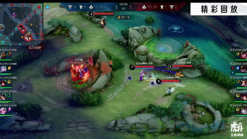 5分55秒,休想拿红,子阳东皇奔狼一开吹响号角再次带领es反红,闪咬开到铠与其1换1,梦岚马可再次痛失红buff