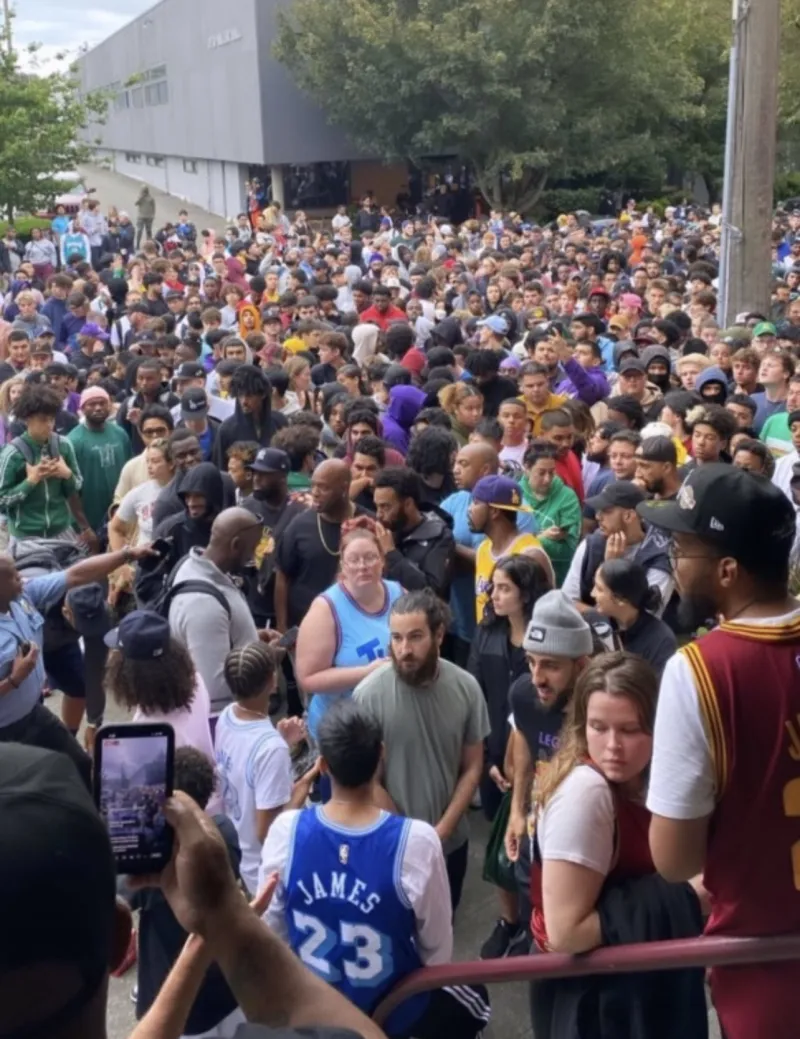 据篮球媒体Ballislife报道,截止至当地时间凌晨3点(即北京时间18点),在比赛球馆外已经聚集了约1500名以上的球迷。他们携带着板凳、座椅、帐篷等工具彻夜等候,以希望能在天亮后免费领票入场。