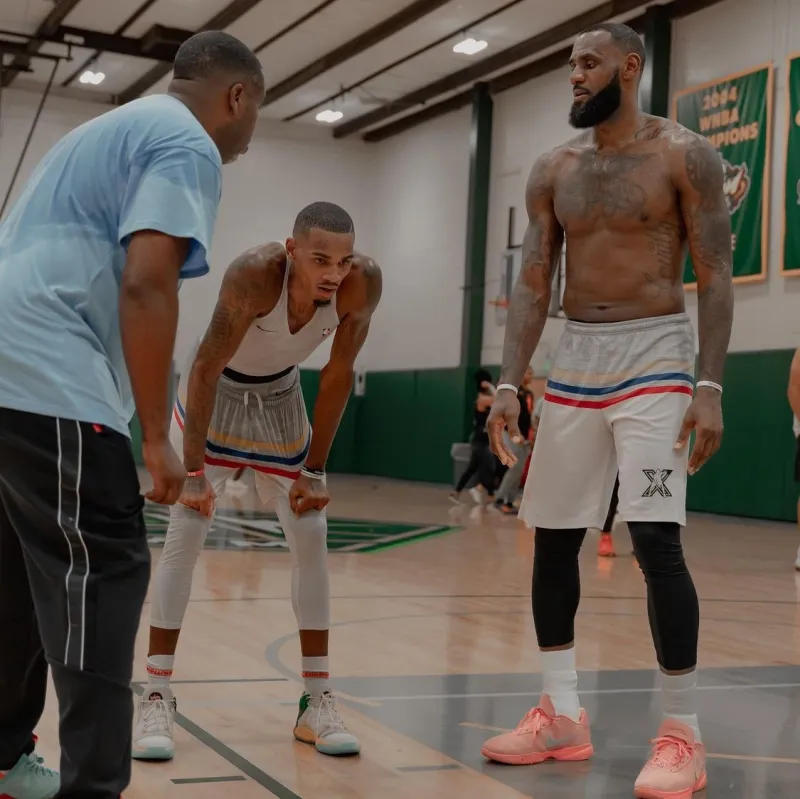 08月22日讯 老鹰后卫德章泰-默里今日更新Instagram,晒出他在昨日The Crawsover赛后和湖人前锋勒布朗-詹姆斯一同加练的组图。