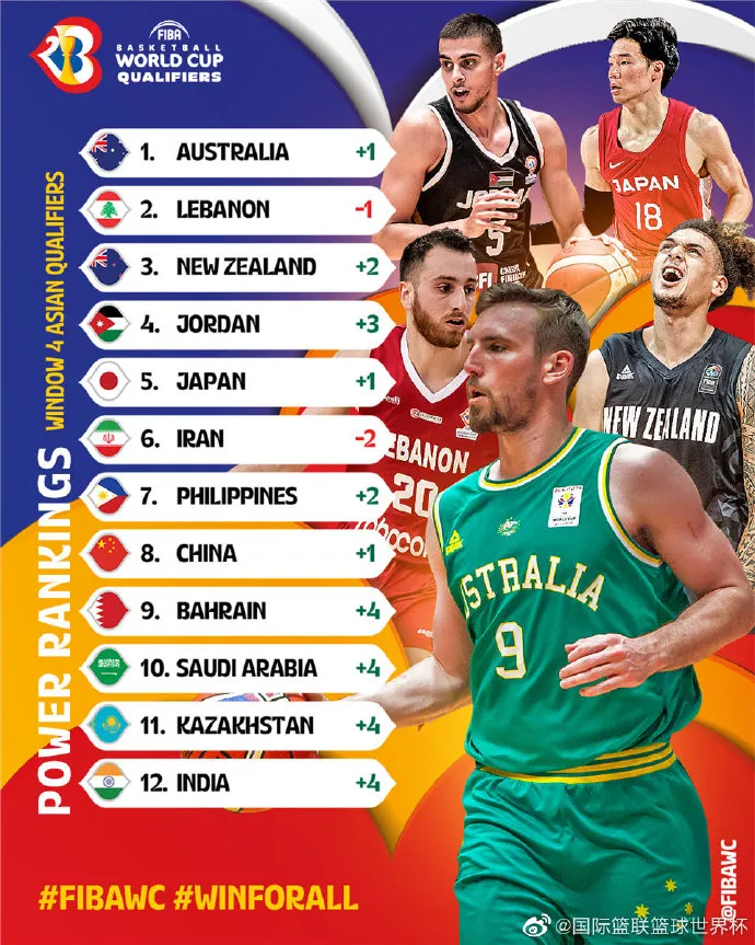 08月22日讯 今天,国际篮联世界杯官方公布了世界杯亚大区预选赛第四窗口期实力榜。澳大利亚第1,黎巴嫩次席,中国男篮位列第8。