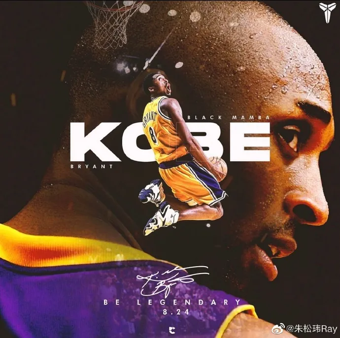 微博原文:“穿回8号,致敬老大!Mamba never out!”