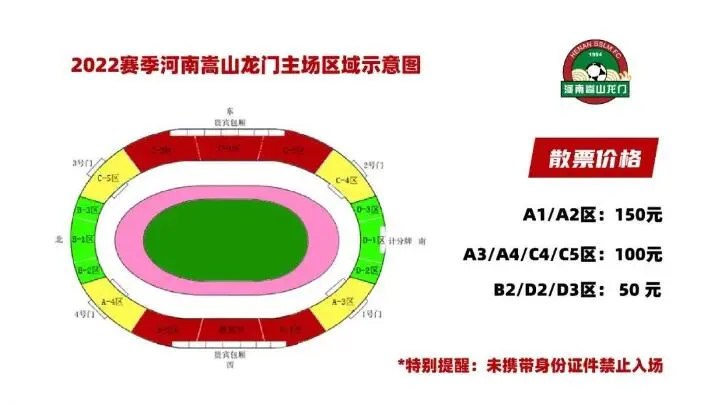 08月25日讯 河南嵩山龙门俱乐部官方发布了28日主场对阵广州队的票务公告,本场比赛将开放30%观众入场,票价分为50、100、150元三档。