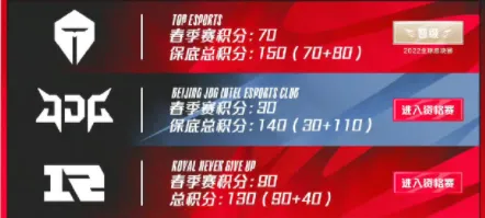 08月26日讯 在刚刚结束的2022LPL夏季赛胜者组比赛中,JDG 3-2 TES成功晋级2022LPL夏季赛决赛,JDG战队S12实时积分来到140分,超过RNG战队的130分,因此RNG失去直通S12全球总决赛的资格跌入冒泡赛胜者组,将根据后续比赛的结果对战JDG或EDG战队。