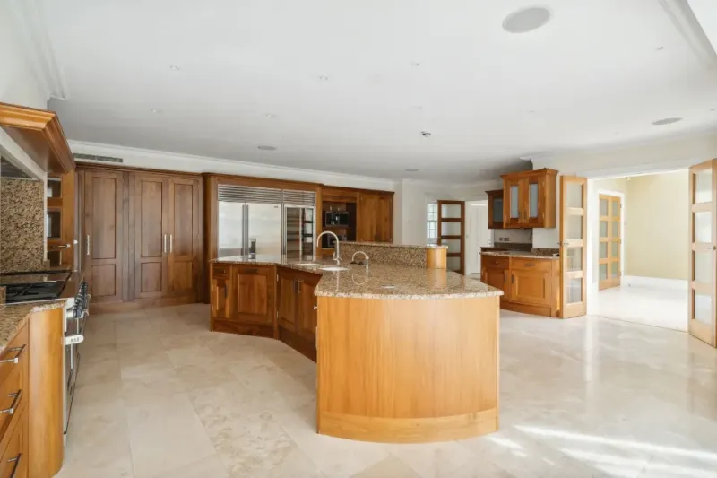 这套房子的挂牌信息上这样写着:“在一楼有五个接待室,还有一个宏伟的接待大厅,一个宽敞的楼梯能通往所有楼层。豪宅内有一间书房和多功能接待室,后面是一间巨大比例的双层客厅、家庭娱乐室和大型开放式厨房,配有现代电器和用于休闲用餐的设施。”