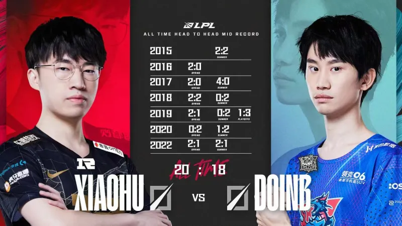 09月04日讯 LPL世界赛资格赛最后一场RNG vs LNG的比赛将于今天打响,赛前LPL官推发布两队中单选手Xiaohu与Doinb的历史交手记录: