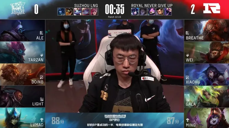 RNG选用:Breathe酒桶、Wei猴子、Xiaohu狐狸、GALA泽丽、Ming璐璐
