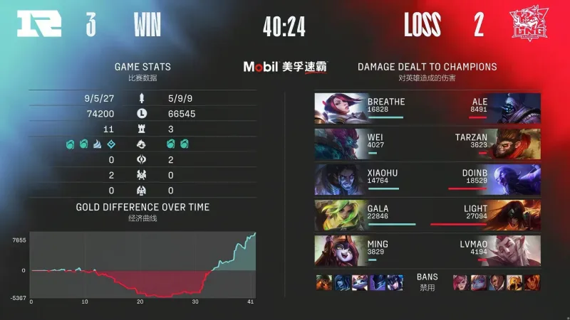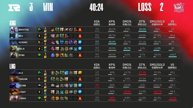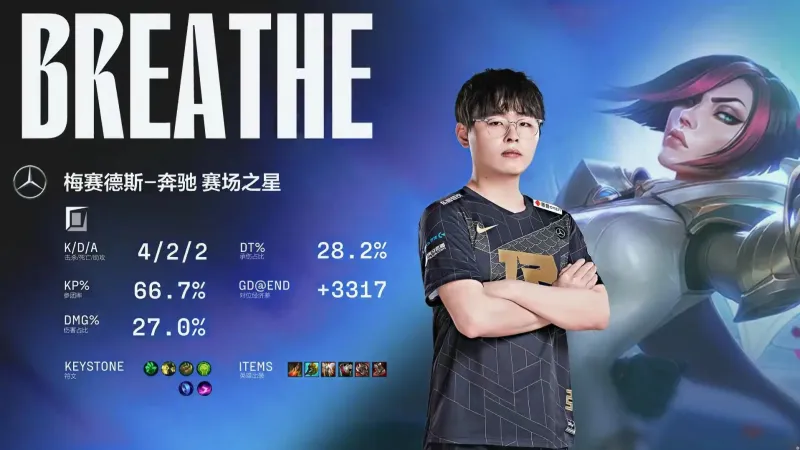 RNG选用:Breathe剑姬、Wei巨魔、Xiaohu塞拉斯、GALA泽丽、Ming璐璐