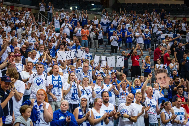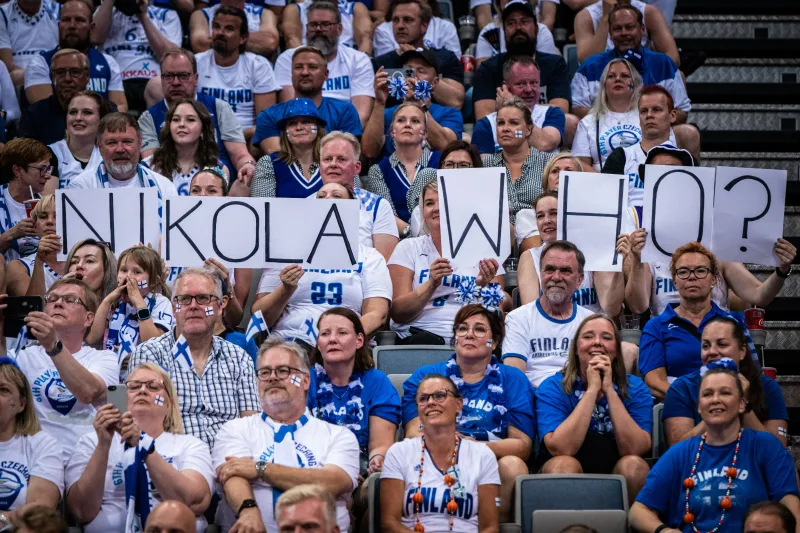 本场比赛开局,芬兰球迷高举标语,写道:“谁是尼古拉-约基奇?“