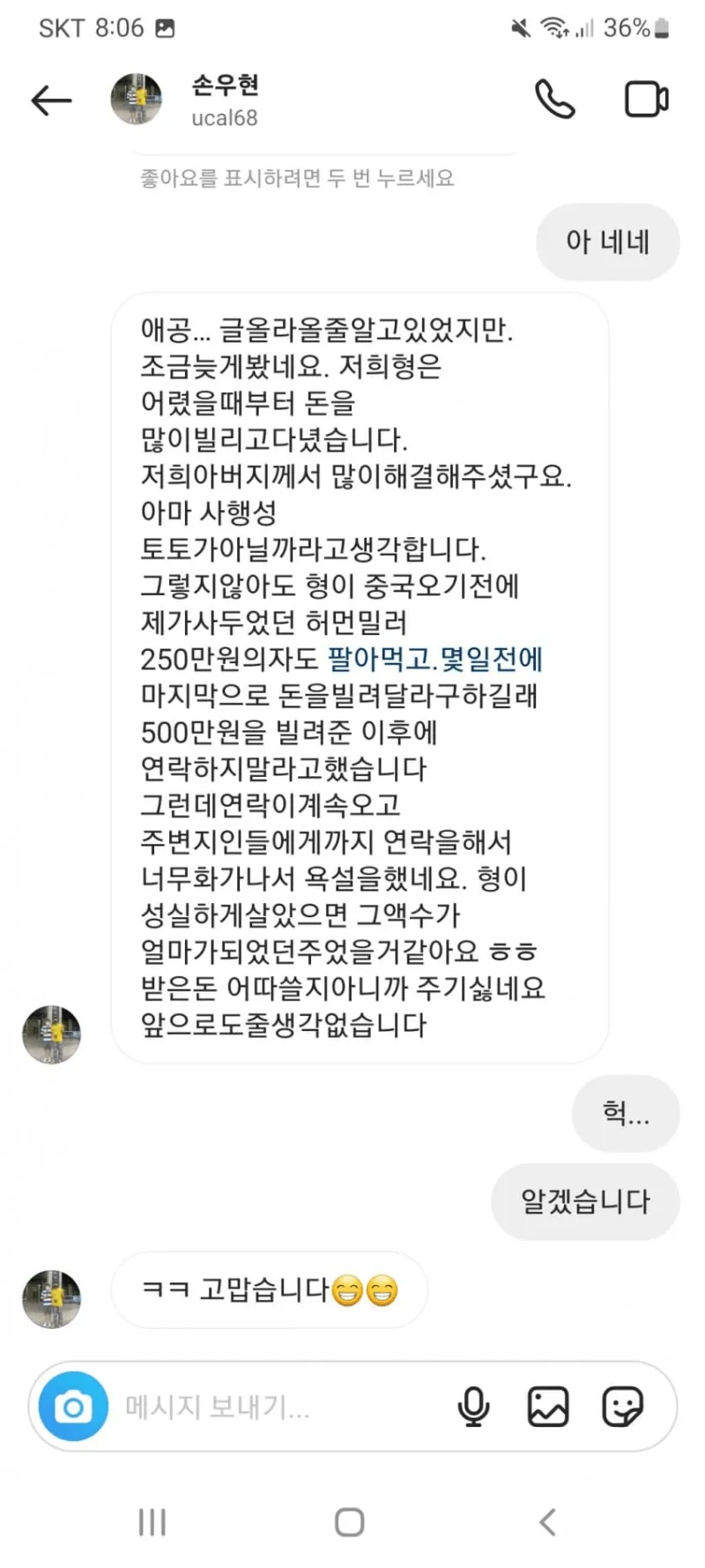 后面的kakaotalk一直威胁Ucal要上传文章揭露他。
