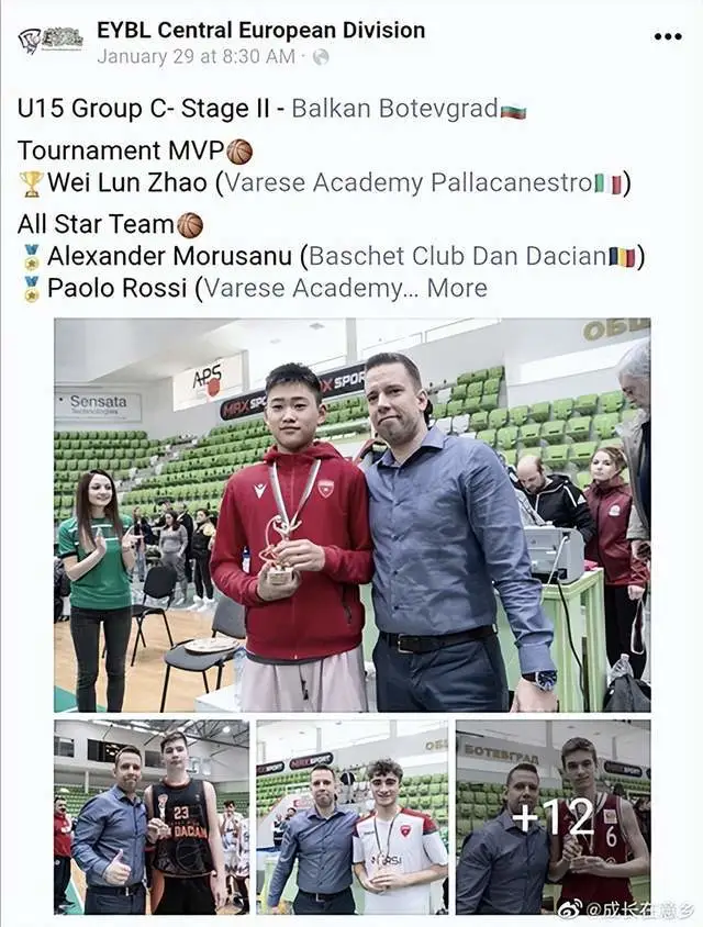 还有在2019年U14全国比赛,赵维伦率队获得意大利全国第四名,他入选意大利U14最佳阵容。参加EYBL欧洲青年联赛球队保持不败战绩,多次当选最有价值球员和最佳阵容。当然,赵维伦这些年的成长经历中,也并非一帆风顺,比如伦巴第大区U14代表队选拔时,赵维伦参加了全部的训练,但在最后一天被另外一个孩子顶替,这对于赵维伦而言,无疑是一次不小的挫折,但是赵维伦在同期举行的另外一个邀请赛中带领人员不全的Varese球队赢得冠军;第二次顺利入选选拔队,带队取得了最好的成绩,也彻底赢得了主教练的尊重。