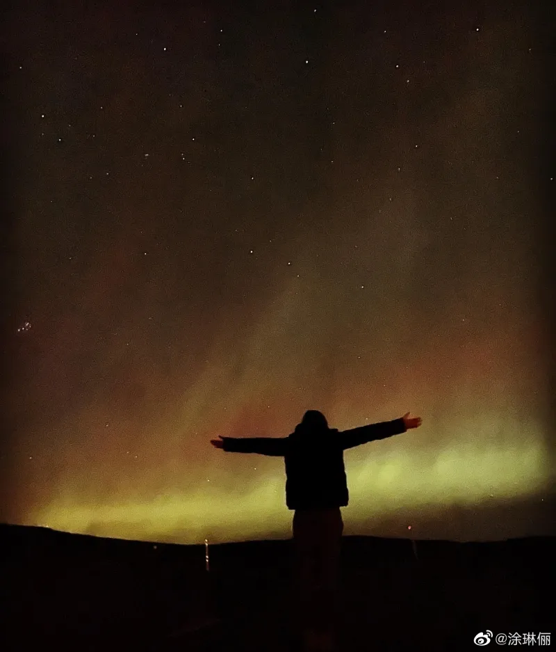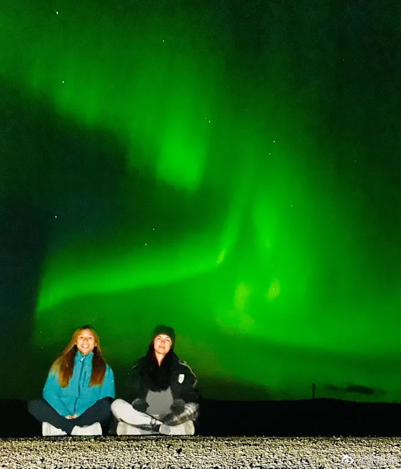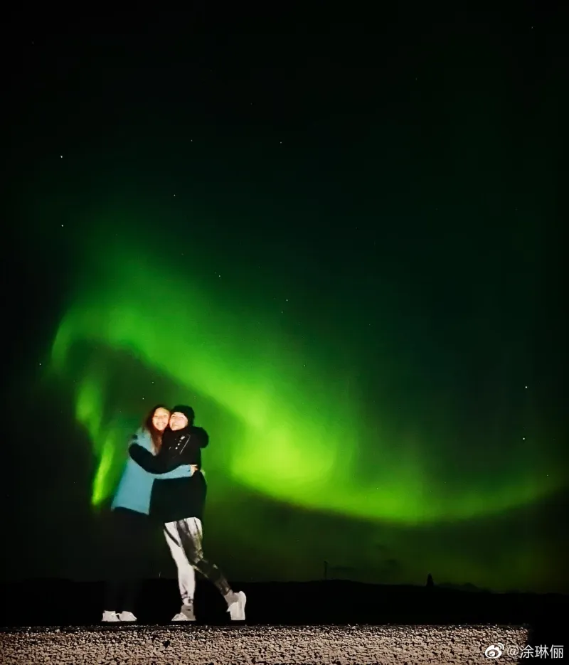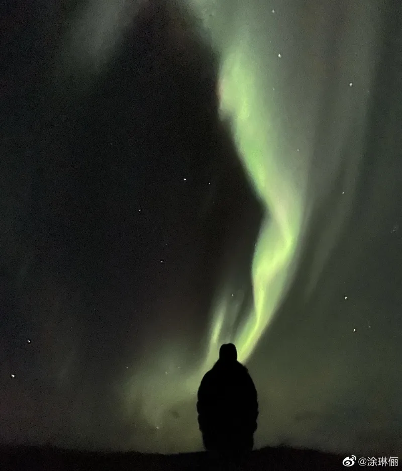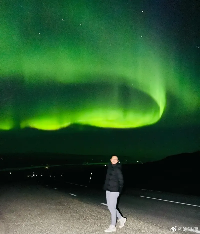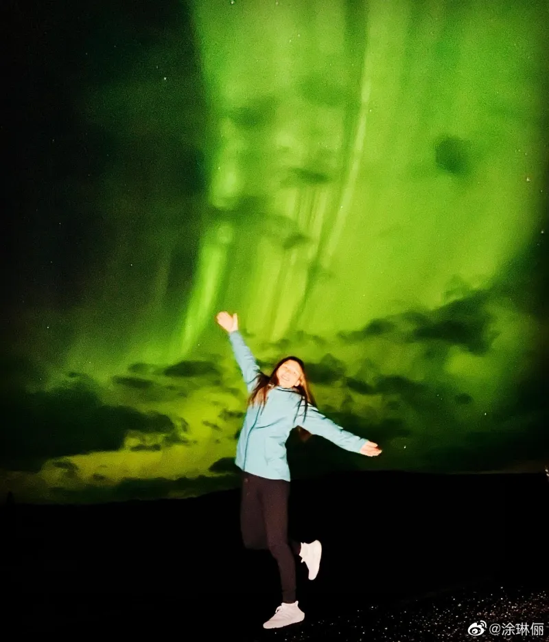 涂琳俪晒照并写道:“We had so much fun seeing the Northern lights(看见了极光,非常的开心。)”