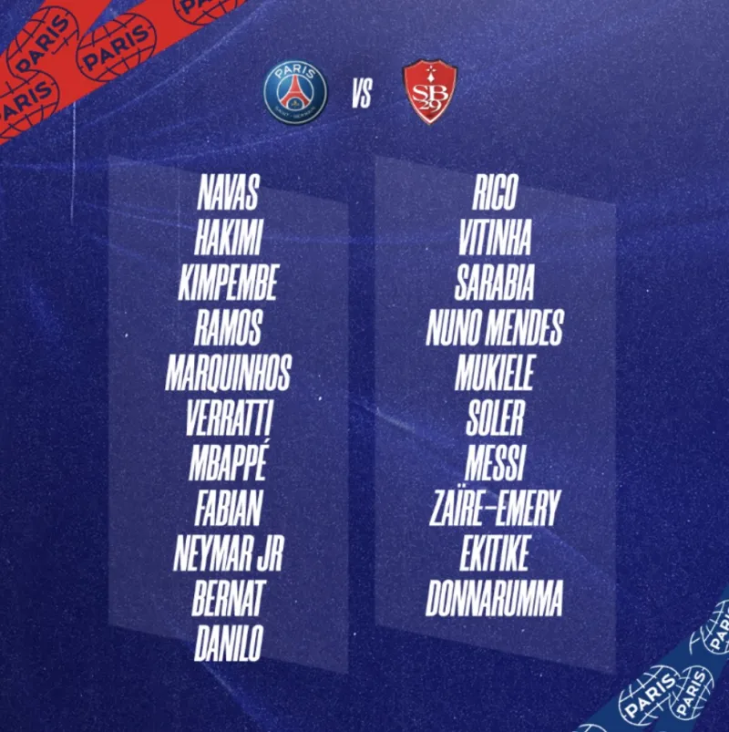 09月09日讯 北京时间9月10日23:00,2022-23赛季法甲联赛第7轮,巴黎圣日耳曼将坐镇主场迎战布雷斯特。赛前巴黎官方公布本场比赛球队大名单。