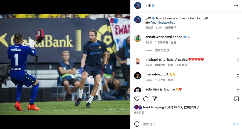 赛后,莱万在个人社交平台晒出了一张感人的照片,照片中巴萨队医将AED(自动体外除颤器)抛给加的斯门将柯南-莱德斯马,从巴萨队医紧张的神情可以看出,当时的情况非常紧急。好消息是,随后该球迷在众人的协助下恢复了心跳,之后被送往医院接受了进一步的诊断和治疗。