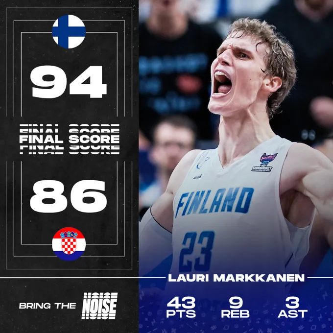 09月11日讯 欧锦赛淘汰赛全场结束,芬兰94-86战胜克罗地亚,芬兰球员劳里-马尔卡宁全场打了32分22秒,投篮29中19,砍下43分9篮板3助攻3抢断0失误。