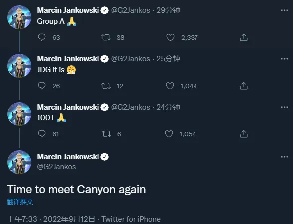 09月12日讯 S12小组抽签后,各队选手及战队更推一轮抽签结果,部分评论如下: