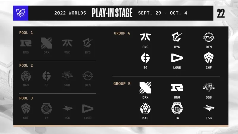09月12日讯 2022LOL全球总决赛入围赛抽签结果如下(按照抽签顺序):
