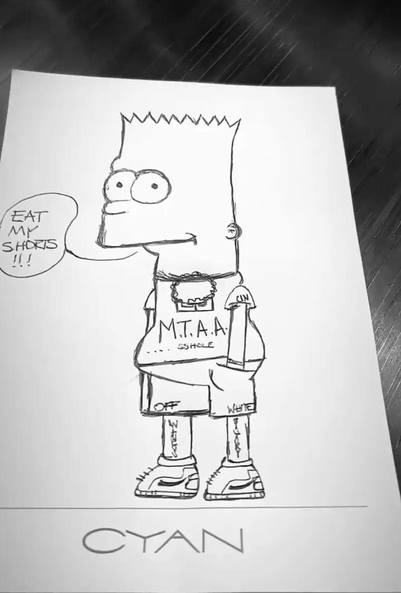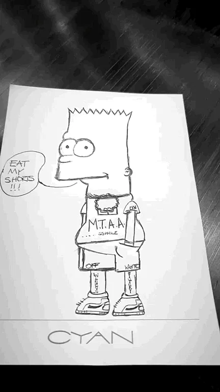 詹姆斯临摹的是著名动画片《辛普森一家》中的Bart角色形象,原版人物形象如下: