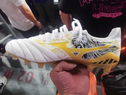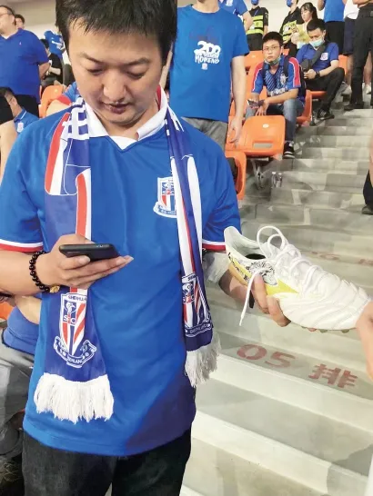 “我当时站在看台最前面,看到高迪拿着球鞋过来谢场,第一次往我这边丢,结果没丢上来。后来再用力一扔,被后排的一个球迷拿到了,而另一只鞋子就往我们第一排扔,我很幸运地拿到了,发自内心地感到开心,同时也很意外,只是很可惜没能要到高迪的签名。我也会好好珍藏,希望下次有机会弥补遗憾吧!”回忆几天前幸运女神降临的中秋之夜,自称著名法国前锋的启东大汉,眼里好似放出了光芒。
