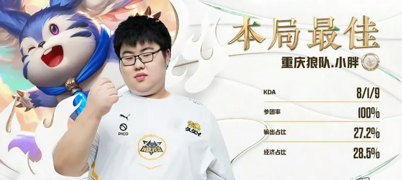 4分54秒,中路Fly猪八戒拉到弈星,狼队一拥而上将其击杀,小胖梦奇拿到人头