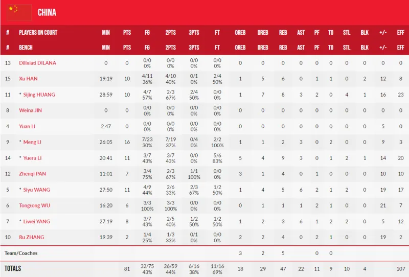 李梦16分2篮板3助攻,李月汝11分9篮板3助攻,王思雨11分5篮板6助攻,韩旭10分6篮板,黄思静10分8篮板3助攻。