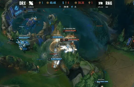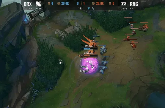 18分钟,小龙团战RNG阵型被分割,DRX打出团灭。