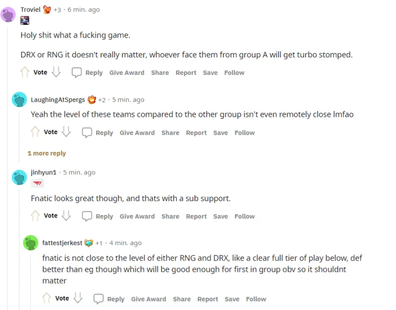 DRX vs RNG / 2022年全球总决赛入围赛 B组 / 赛后讨论(未经允许禁止转载,搬运截图)