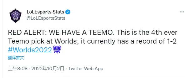 虎扑10月02日讯 在ISG对阵RNG的比赛里,ISG上单选手ADD选到了提莫上单,上一次提莫队长登上世界赛舞台还要追溯到2013年的9月22日,TSM中单猩猩队长在对阵GG战队的小组赛里选到了中单提莫,但最终输掉比赛。
