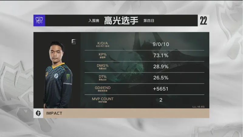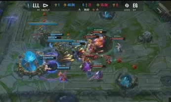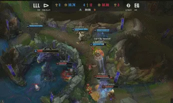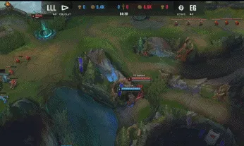 19分钟LLL抓到机会率先击杀巨魔,但Impact支援赶到率队反打,EG完成1换3将优势滚到8K;