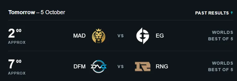 比赛队伍:MAD vs EG、RNG vs 日本DFM