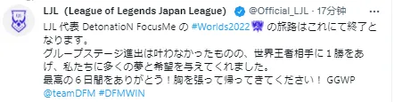 LJL代表队伍DFM在S12的旅程就在这里画上句号了。